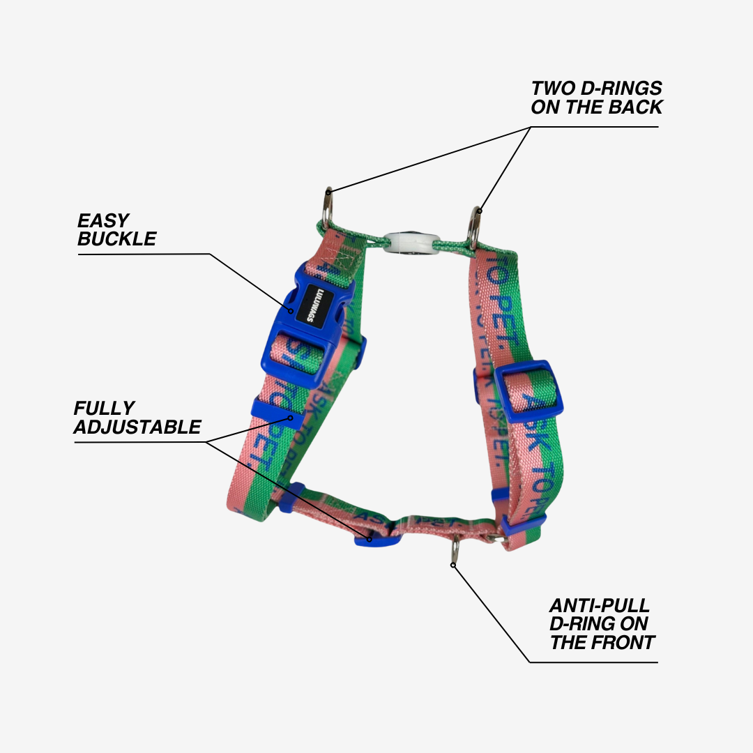 Our H-shaped harness sits clear of the shoulder blades so your dog can take a full, natural stride. No bulky panels across the front, no straps cutting into the soft tissue—just easy movement for trotting, turning, climbing stairs and zoomies.