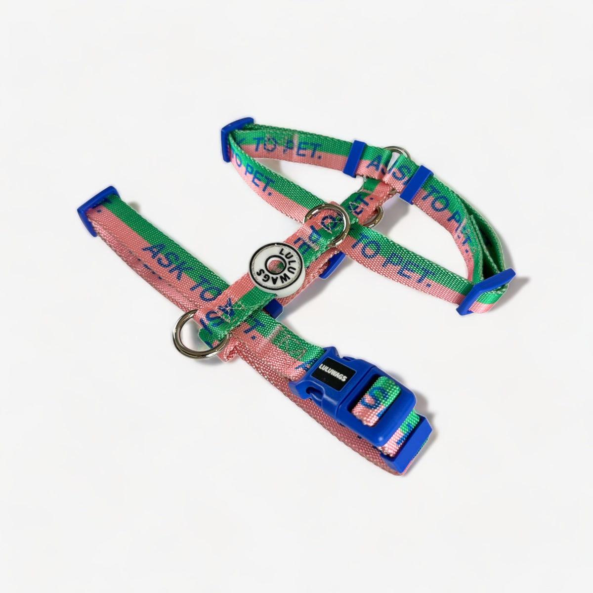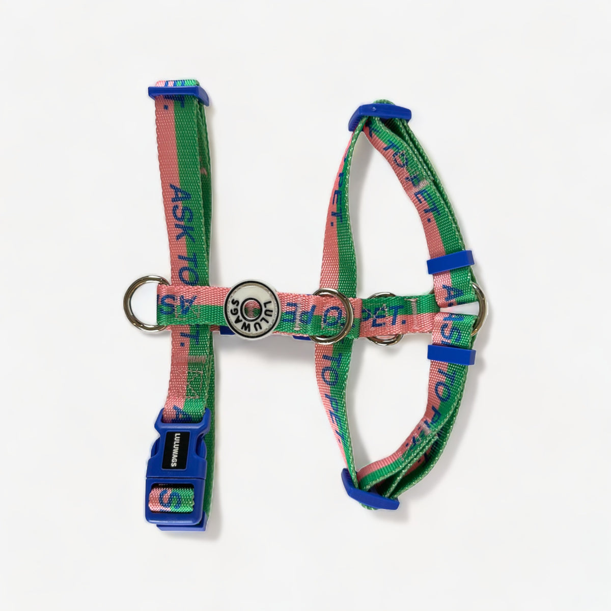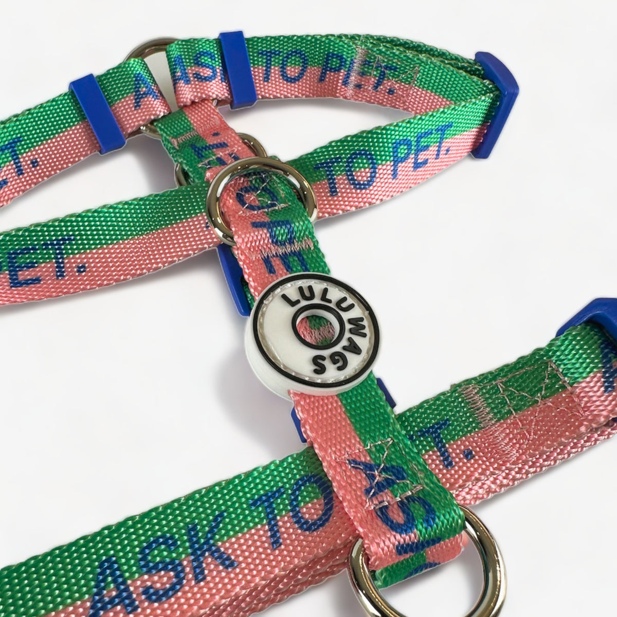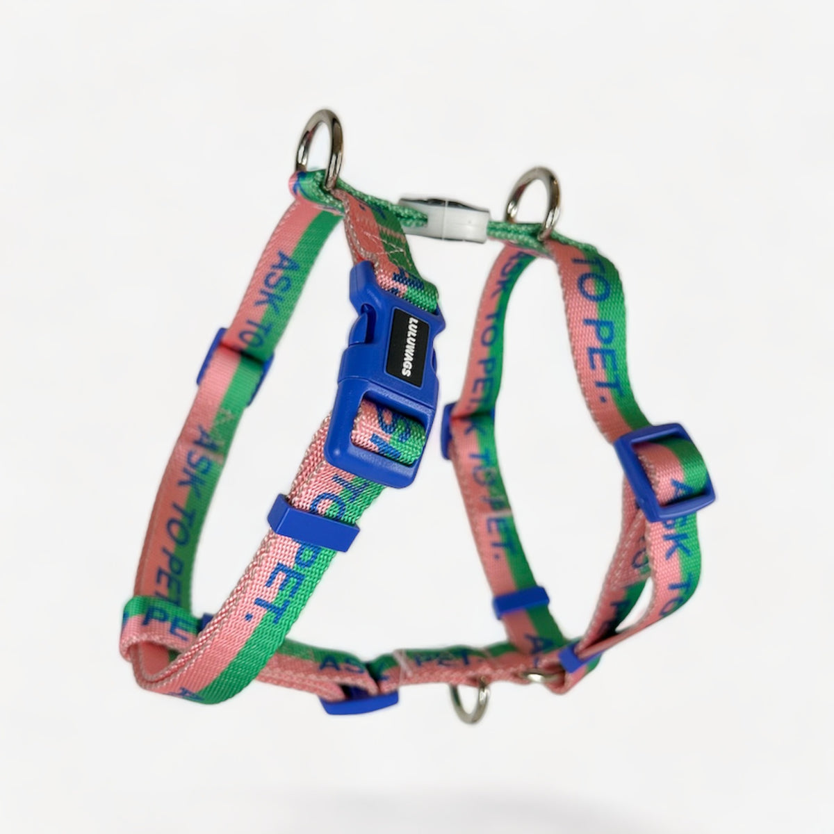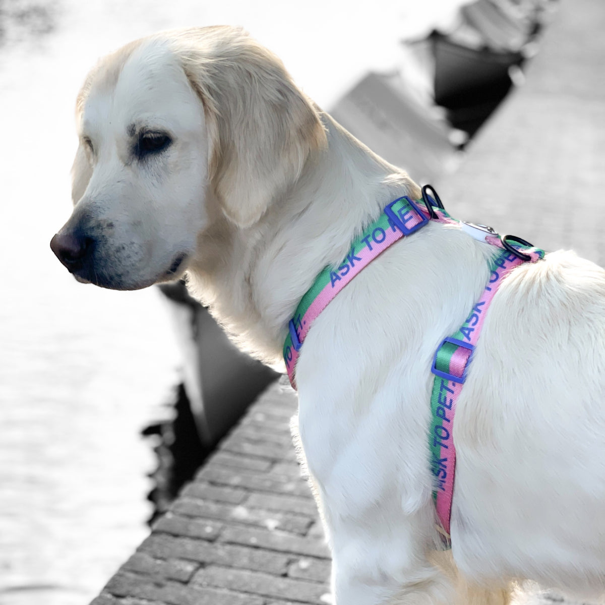 Enhance your dog walking experience while fostering a respectful environment with our 'Ask to Pet' nylon dog harness. Perfect for responsible pet owners who prioritise their dog's comfort and well-being.