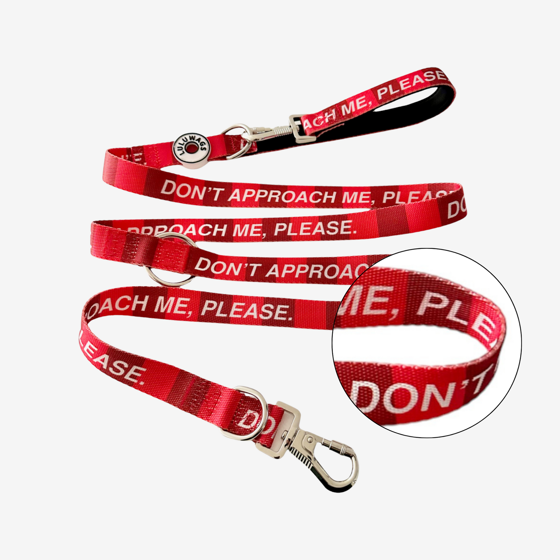 Stand out while setting boundaries with our vibrant red 'Don't Approach Me, Please' adjustable dog leash, featuring bold white text. This eye-catching leash not only enhances your pet's safety but also sends a clear message to maintain a respectful distance. Prioritize your dog's well-being and ensure a stress-free experience with this essential, attention-grabbing leash designed to keep your canine companion protected and at ease in public spaces.
