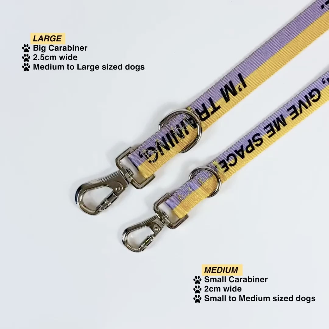 Elevate your dog training experience while promoting a respectful environment with our 'I'm Training, Give Me Space' adjustable nylon dog leash. Ideal for dedicated pet owners who prioritise their dog's growth and well-being.