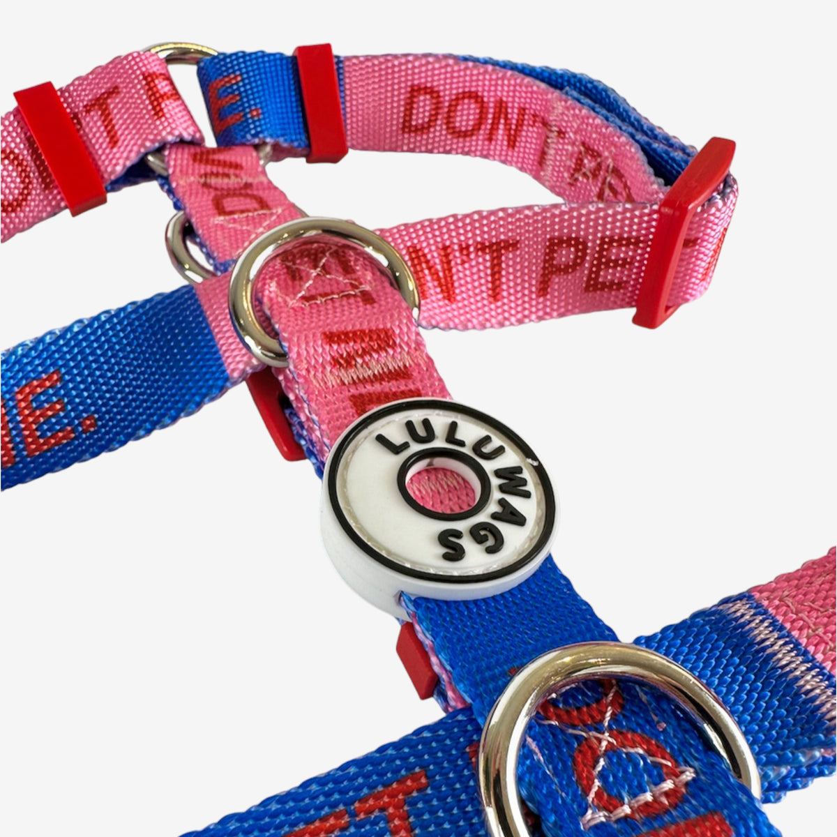 Clear message/warning collars, one-hand quick-release for speedy getaways, an adjustable fit that grows with your pup, and soft, coated nylon that shrugs off mud and goes in the wash at 30 °C. Finish the look with matching Luluwags lead and harness.